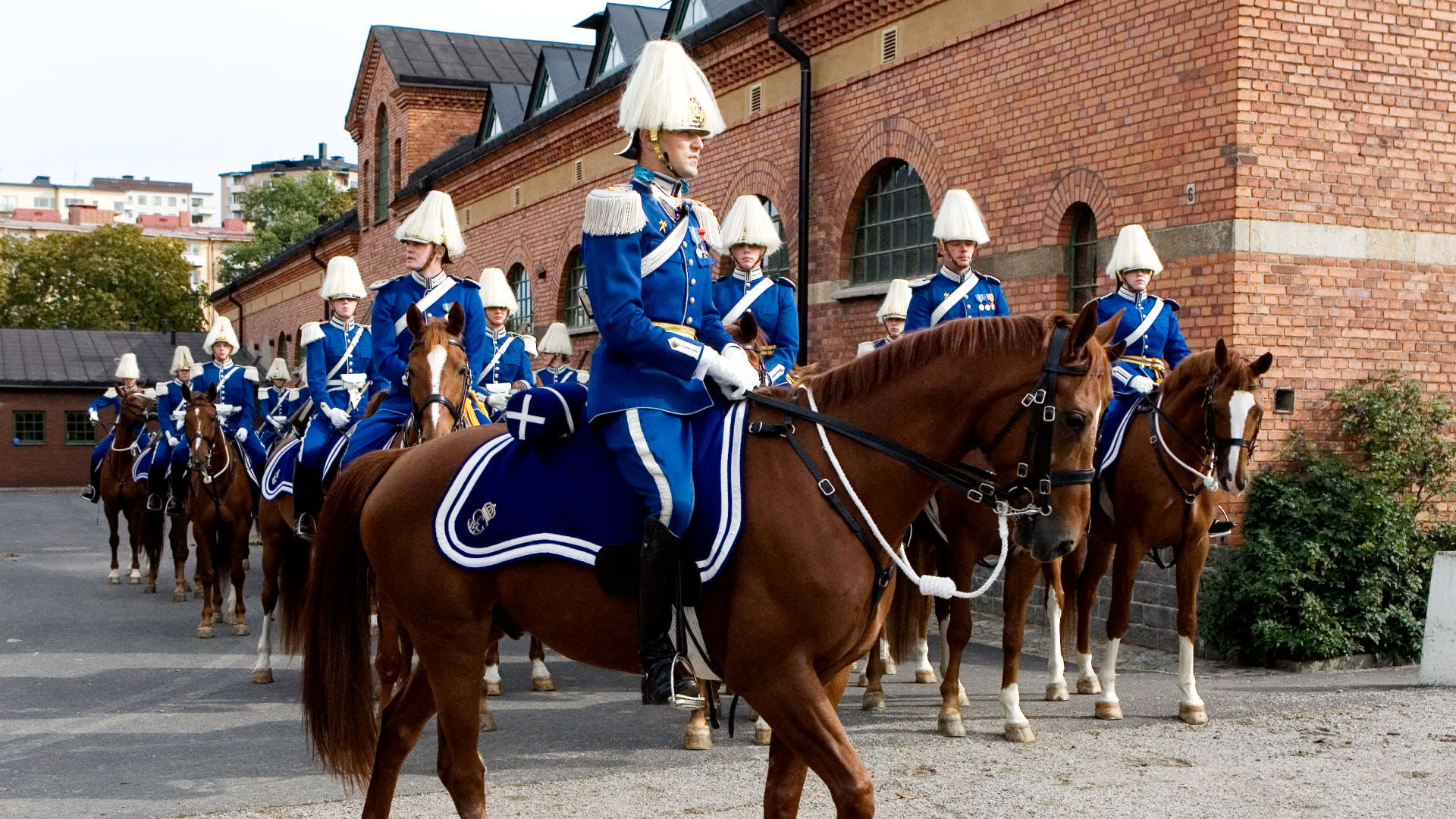 Hälften av din arbetstid går till att öva inför och genomföra det ceremoniella arbetet. Det innebär att du också tar hand om hästarna.